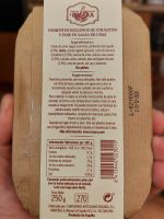 Elaboración: Caldo de carne de ternera, Pimiento del piquillo (23%), Leche. Aceite de girasol, Carne de chuletón de ternera (5,5%), Harina de arroz. Azúcar, Uvas pasas (3,5%), Tomate, Setas, Cebolla, Bloc de hígado de pato (1,5%), Vino de oporto, Sal, Ajo, Especias