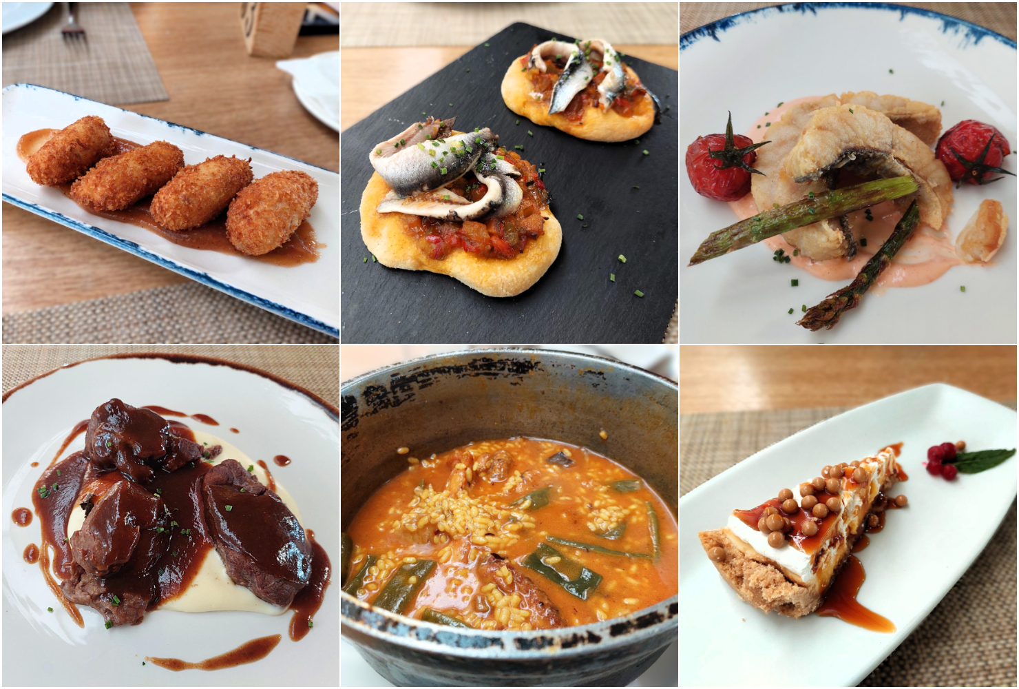 Peeeero, como era entresemana, había un “menú ejecutivo” (¿quién inventaría el nombrecito?), de lo más apañao, que por 23,9 €, incluía un aperitivo, dos entrantes, principal a elegir entre pescado, carne o arroz, y un postre. Venga, ¿nos hacemos un menú pidiendo uno pescado y otro arroz y compartimos? Vamos. Y al final, como se equivocaron y nos sacaron la carne que no habíamos pedido, y decidieron regalárnosla, quedó así de guapa la cosa, vaya degus que nos marcamos a precio de menú: