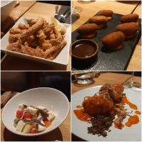La carta es variada, ecléctica, alternando referencias clásicas tradicionales de la zona con otras actualizadas. Tomamos para compartir: