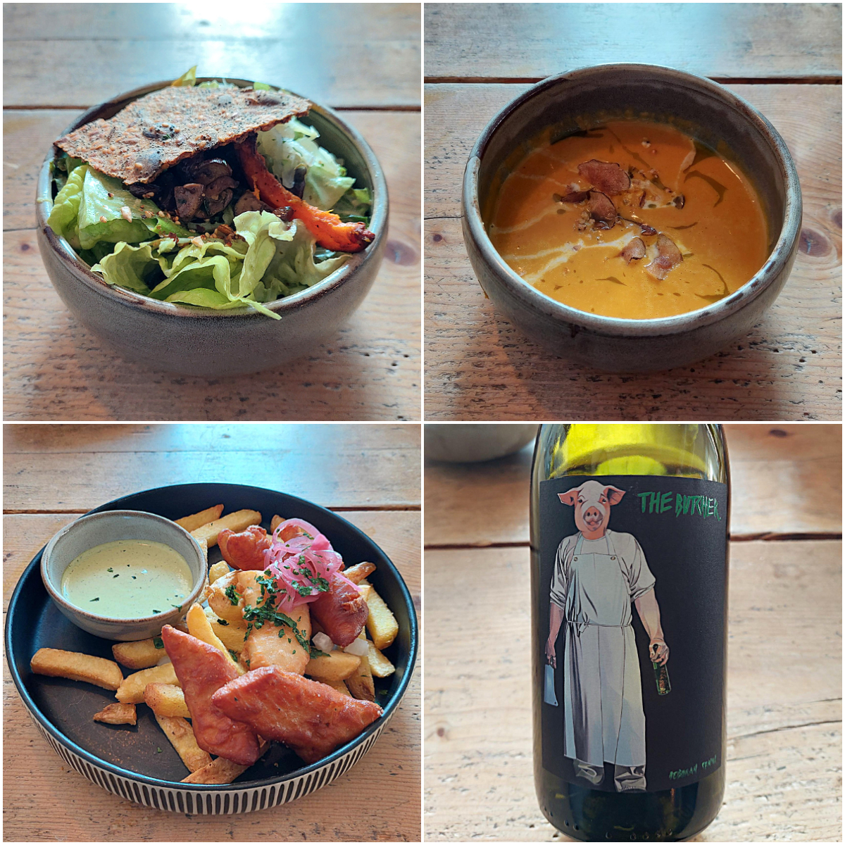 Ueli Bier Sorglos 0.0 / The Butcher Weiss 2023 Johann Schwarz Chardonnay, Neusiedlersee Burgeland D.O. (Austria) / Lion Rouge 2022 Weingut Jauslin Pinot noir Gamaret Diolinoir y Carminoir, Baselland D.O. (Suiza)