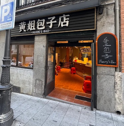 Barra larga y llena de vaporeras. Al fondo la cocina refulgente como los chorros del oro. Parroquianos madrugadores como yo, y notemos que soy el raro en el lugar. Carta escueta, y mola que sea así. Tres tipos de relleno y chimpún. A 2 EUR/ud. Bebidas más o menos igual. Carta en castellano, inglés y chino. Pedir… y llegó volando la comanda. Llegan los baos de tamaño maternal. Nada de esos baos chikitufos de la bolsa de congelados, nope. Estos baos han hermoseado y van bien de relleno. ¿Qué rellenos he desayunado? El primero ha sido de fideos (sic) picantes. Una delicia. Un picante que se notaba, pero sin llevarte al exabrupto. Era un picante saltarín. ¡ Como para comerse 100 del tirón ! Y el segundo de cerdo. En este tipo de preparaciones el de cerdo es para mi… pues como las croquetas o la ensaladilla en uno español. Es la piedra de toque. Si eso está bien, lo demás irá bien. Y el de cerdo está también riquísimo, ¡ y para comerte otros 100 ! Con caldito dentro, sin ser sopa. Carne picada, y no esa masa informe que te encuentras en demasiados sitios.
