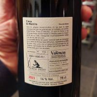 Finca El Maldito 2023, un vinazo singular elaborado por Juanjo Martínez Palmero en Bodegas Terra D’Art, en Ahillas (Valencia), tan solo cuando ellos consideran que la añada va a ser óptima, en su mayor parte bobal (de grano menudo) procedente de cepas casi centenarias de parcelas escogidas, criado 14 meses en barricas nuevas de roble francés, y dedicado a Rafael “El Maldito”, un hombre “duro” que vivió durante 104 años en Ahillas, donde cultivó y cuidó los viñedos de los que procede este vino al que da nombre.